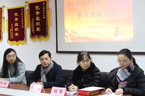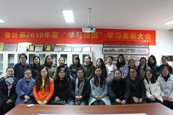 “学而时习之,不亦说乎”。12月25日下午,会计系2019年度“学习强国”平台学习标兵表彰大会在实训楼南213室党员之家召开。会计系主任侯明贤教授、会计系党总支书记杨军老师、院办刘颖老师及会计系全体教师党员出席了会议,会议由会计系学工办主任陈敏洁老师主持。