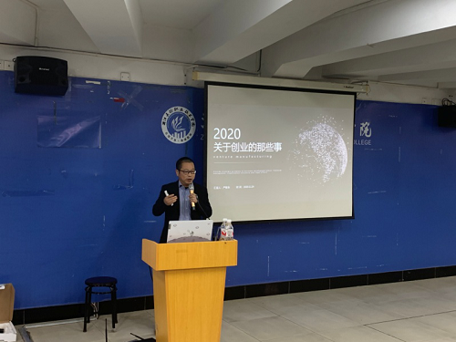 严敬华结合自己的成功和失败经历在师生们带来了《关于创业的那些事》。他分享了创业心得,从利润、需求、供应链、传播等维度告诉同学们什么才是一个好的创业项目,并告诫同学们在创业前要“找机会、定目标、找方法”,从个人核心竞争力、资金、身体等方面做好充分的准备等。