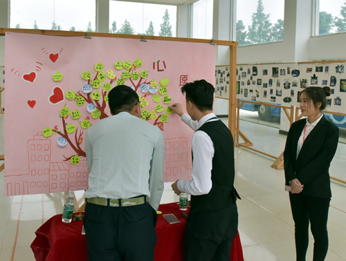 下午15:25分,在行政楼1312会议室举行了会计系校友交流会,出席会议的有会计系党总支正副书记杨军老师和李晓梅老师及会计系辅导员高计龙老师和陈敏洁老师。十几位校友代表及在校学生代表参加了此次交流会。交流会由上届校友会会长叶彪同志主持,作为培训总监的他主持风格风趣幽默,给交流会营造出和谐、愉快的交流气氛。接着,由会计系党总支副书记李晓梅老师致辞,提出将校友平台建设得更好,实现校友与母校的互利共赢。随后,杨丹青同学进行了讲话,帮助校友们更好地了解母校。最后,校友们进行了长达四十分钟的经验交流,会长叶彪同学也对校友会的扩大和发展方向提出了建设性意见。下午16:45分,校友们在学生会干部的带领下,来到行政楼展厅参观校友会主题风采展,在悉心讲解下,与老师们一起回忆母校生活。参观结束后,校友们在许愿树上写下了对母校的真挚祝福,并进行了合影留念。