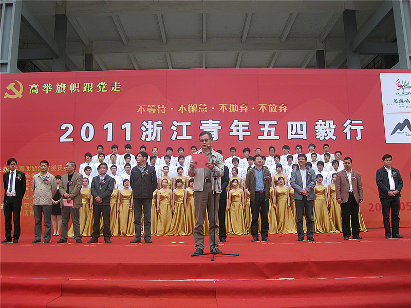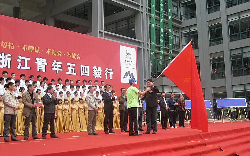 为迎接建党90周年,倡导低碳生活,弘扬毅行精神,高举旗帜跟党走。5月4日下午,由共青团浙江省委员会、浙江省教育厅、浙江省学生联合会、中共西湖区委员会、西湖区人民政府共同主办,共青团浙江科技学院委员会、共青团杭州市西湖区委员会承办的2011年浙江青年五四毅行暨第四届小和山文化节开幕式在浙江科技学院银杏广场隆重举行,省教育厅副巡视员夏建勇、团省委副书记王征、省教育厅组织处副处长陈仁坚、中共西湖区委副书记马杭军、团省委学校部部长王尧祥、小和山高教园区管委会办公室主任吕华等相关领导出席开幕式,我院副院长贺旭辉教授应邀出席。我院110余名学生代表以及浙江科技学院、浙江工业大学、浙江外国语学院、中国计量学院、浙江中医药大学、西湖区各界青年代表等共计5000余名师生参加了本次活动。