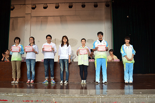 5月31日中午,我院第八届全国残运会志愿者表彰暨2011年团学工作表彰大会在体育馆隆重举行。学院执行院长吕振合、党委副书记洪骏、副院长贺旭辉、学生处处长刘东、团委书记陶元、团委副书记林菁菁以及各系书记、辅导员、学生代表出席了本次活动。