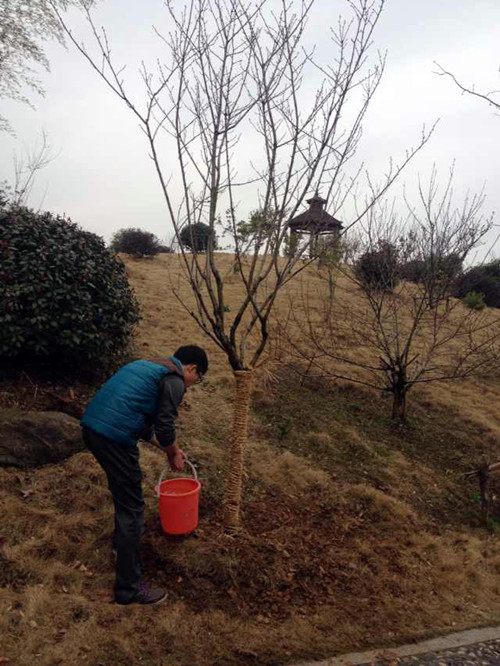 环保协会成员及学院“一体两翼”学生干部都踊跃地参与到此次活动中。尽管天空中飘着小雨可是大家依旧干劲十足,互相帮助,手持铲子和水桶,将充满希望和生机的樱花树植入土中。大家看着那一片自己亲手中下的树苗在微风中摇曳,无一不露出幸福的笑容。